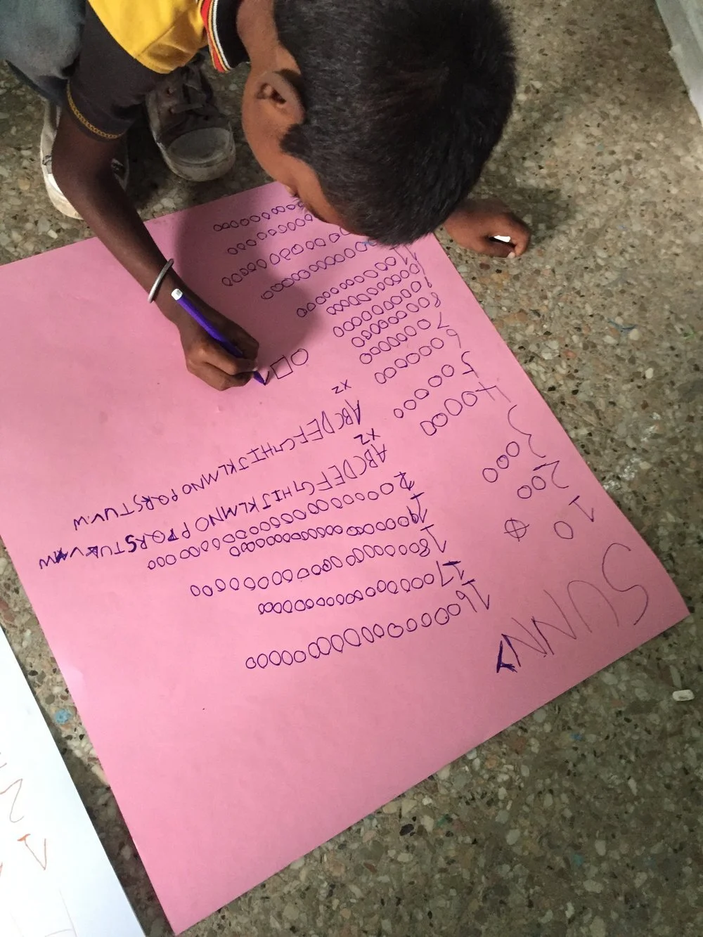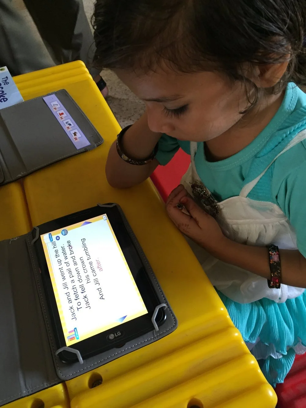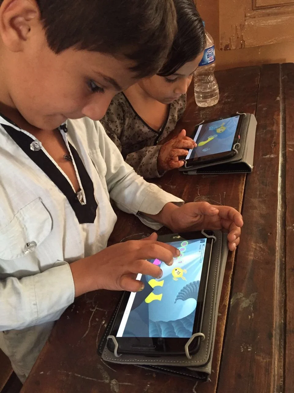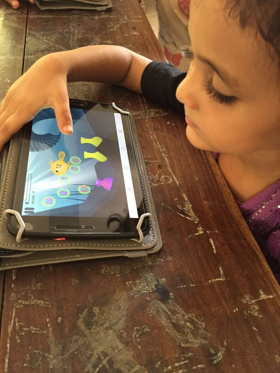 From June to November 2016, we implemented a proof-of-concept (POC) to test the viability of the Teach the World model. We recruited 23 children aged 5 - 9 years who had never attended school. Each child was given a tablet with reading and math apps, presented in an engaging, interactive,“gamified” format. For 90 days, daily sessions were led by a facilitator, but the children received no direct instruction.